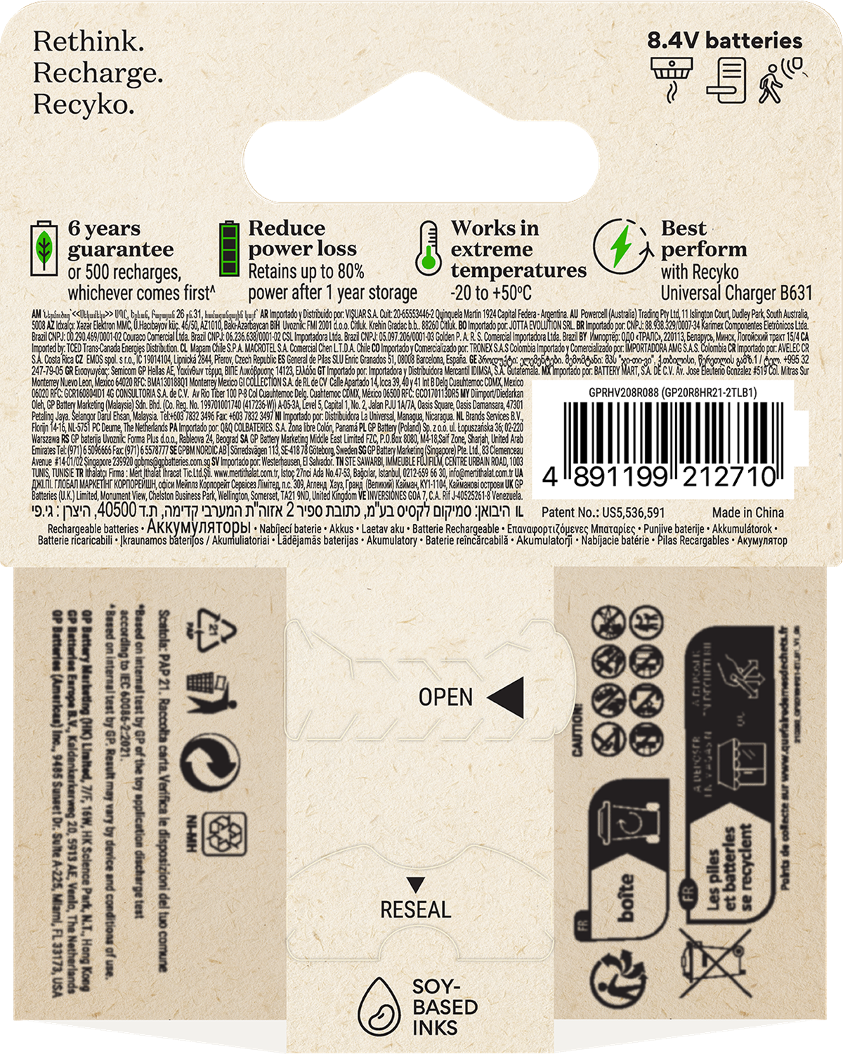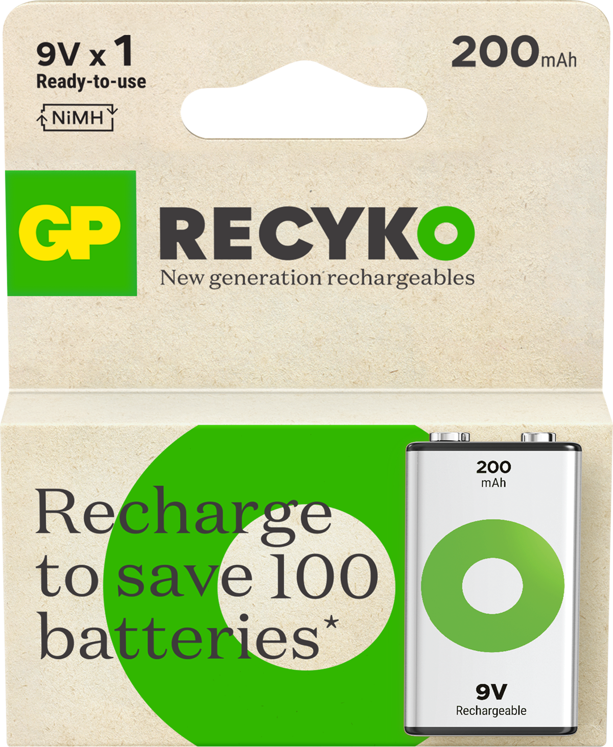 GP Recyko 9V-Batteri 200mAh är ett kraftfullt laddningsbart batteri som är utvecklat för ditt vardagliga användande. De är laddade vid köp och redo att användas direkt ur förpackningen. Till skillnad från engångsbatterier så kan Recyko användas vid låga temperaturer, ända ned till - 20°C, pålitlig prestanda i extrema temperaturer. Över 90% av batteriet, inklusive förpackning är återvinningsbart.