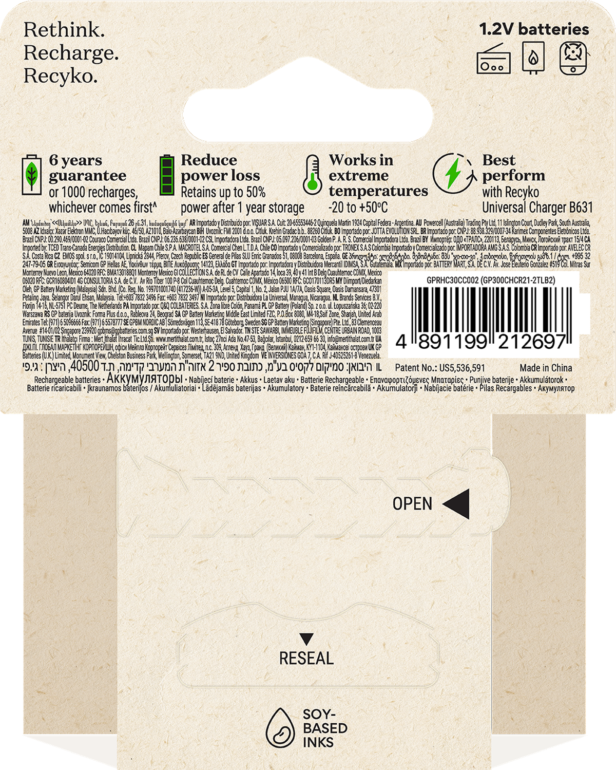 Recyko 3000 mAh batteri är ett laddningsbart NiMH batteri som är utvecklat för ditt vardagliga användande. De är laddade vid köp och redo att användas direkt ur förpackningen. Till skillnad från engångsbatterier så kan Recyko användas vid låga temperaturer, ända ned till - 20°C. Över 90% av batteriet, inklusive förpackning är återvinningsbart.