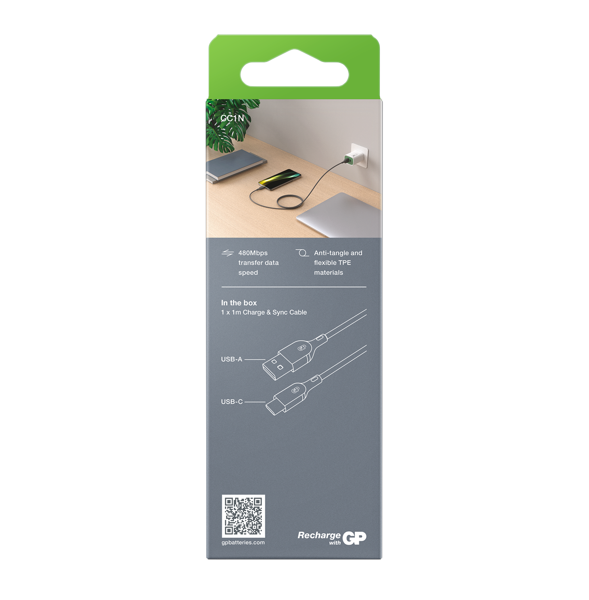 Laddningskabel GP USB-A/USB-C Essential CC1N 1 m svart