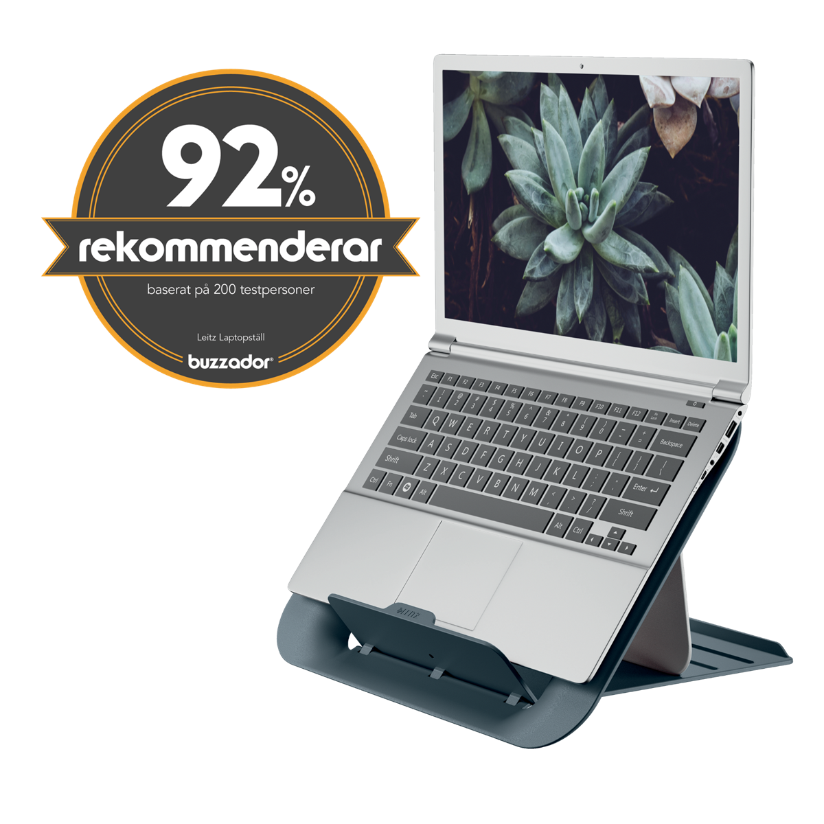Ergonomiskt utformat laptopställ för att maximera komforten på din arbetsplats med 80% återvunnen plast.