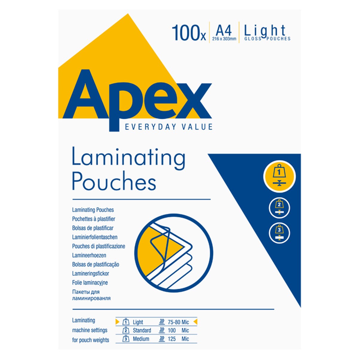 Lamineringsfickor Fellowes Apex 75 mikron blank A4 100/fp