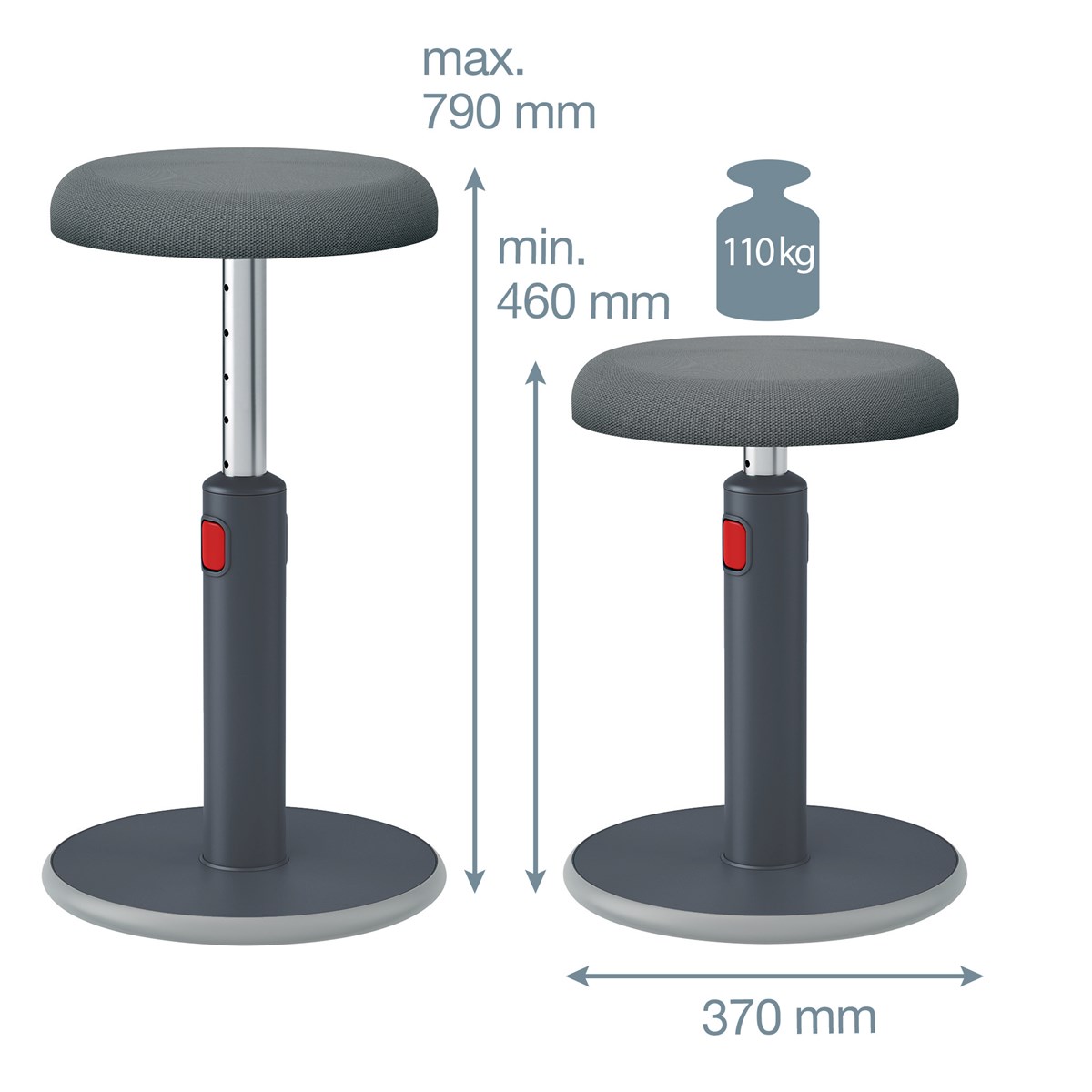 En balansstol ger dig flexibiliteten att byta mellan sittande och stående medan du arbetar, uppmuntrar muskelrörelser, förbättrar hållning och ökar energinivåerna. Har en rundad bas för att uppmuntra aktiv rörelse genom att vrida och gunga medan du arbetar för att stärka ryggen. Höjden kan enkelt justeras mellan 45-79 cm, pallen förblir stabil i alla höder. Maxvikt 110 kg. 5 års garanti.