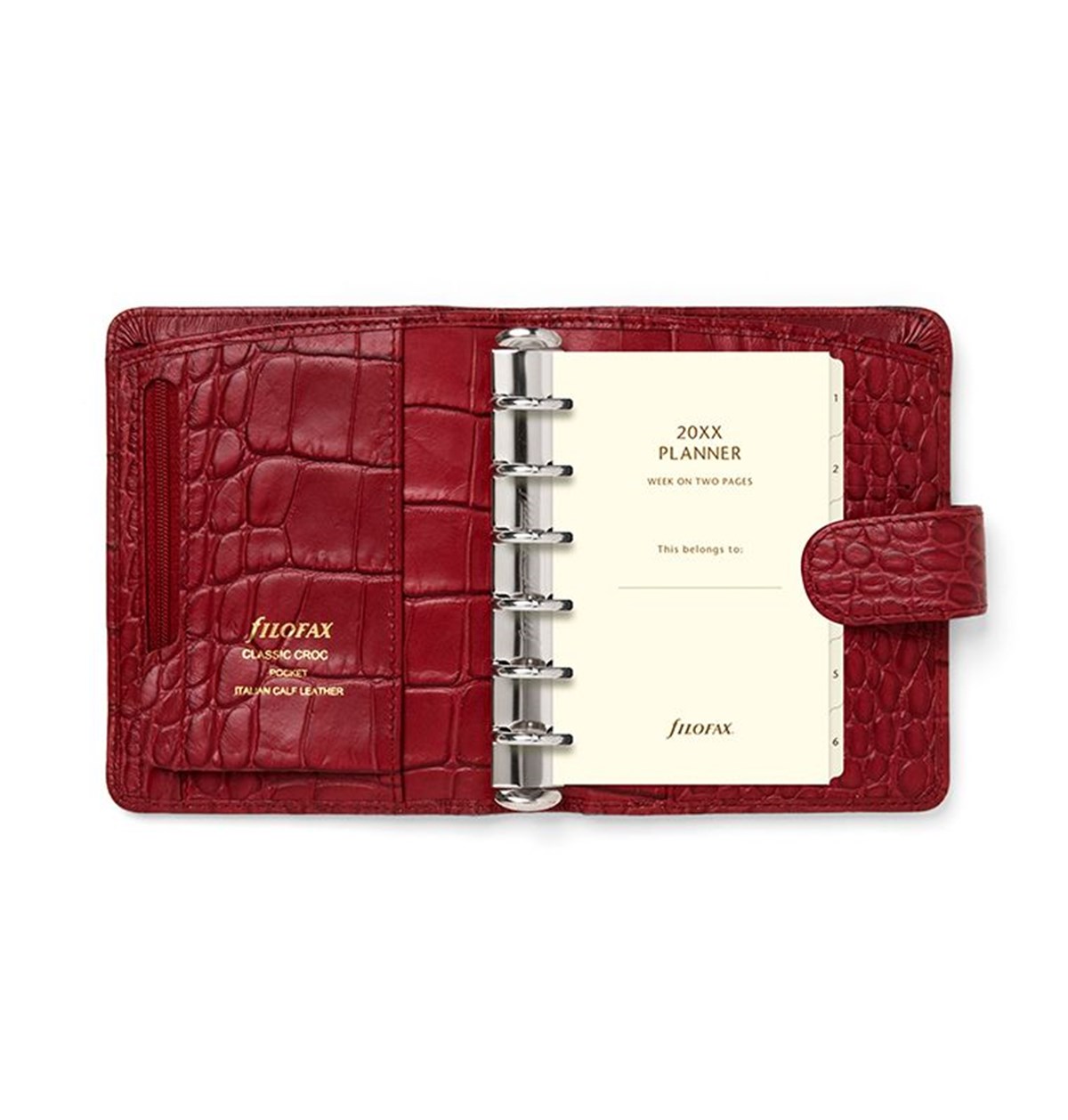 Härligt mjuk pärm tillverkad av lyxigt italienskt kalvskinn med krokodilmönster.