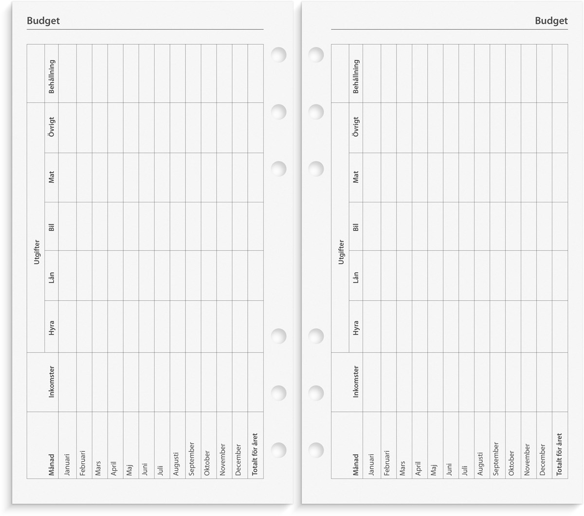 Systemkalender med grundsats. Grundsatsen innehåller hålad kalenderdel (4601) och blankettdel. Pärmen har ringmekanism (Ø 20 mm), se kreditkortsfickor, myntficka, fack för kvitton o dyl och pennhållare. Format pärm: 135x195 mm.