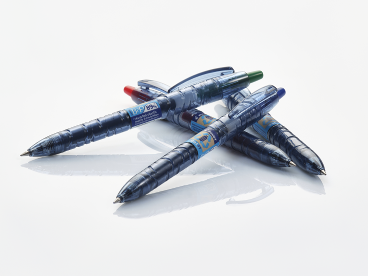 Denna penna är tillverkad av 92% återvunnen plast från PET-flaskor, varav 2,5% kommer från återvunnen plast plockad längs stränder och utmed vattendrag, ett innovativt sätt att delta i kampen mot havsföroreningar.