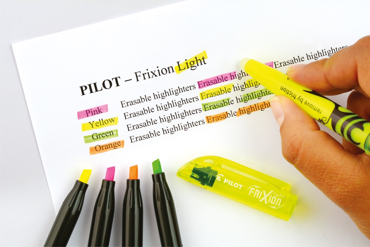 FriXion-teknologin finns även till överstrykningspenna! Stryk över och sudda bort så många gånger du vill med FriXion Light utan att riskera att förstöra pappret. Överstrykningen raderas genom den värme som skapas vid suddets friktion mot pappret. Tack vare det raderbara termosensitiva bläcket: Skriv, sudda och skriv om! Fungerar bäst på tryckt text. Slitstark sudd.