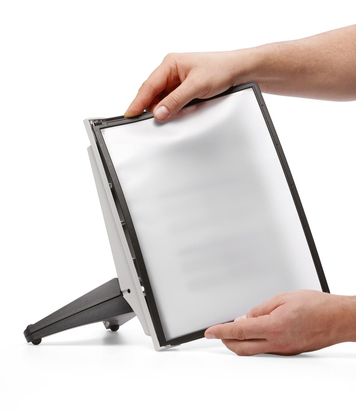 Platsbesparande bordsställ med 5 svarta paneler för A4 i polypropylenplast. Utmärkt för det lilla kontoret eller hemmakontoret. Smidig och funktionell design. 5 års garanti.