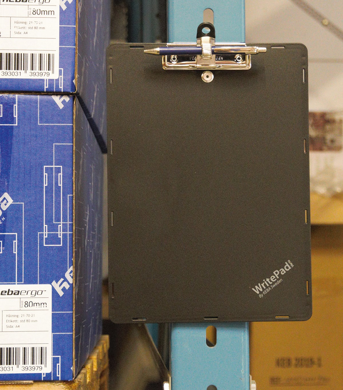 Svensktillverkad skrivplatta i tålig PP med kraftig gummerad magnet. Fäster på alla ytor där magnet fäster. A4-format. Pennhållare på clipset. 5 års garanti.