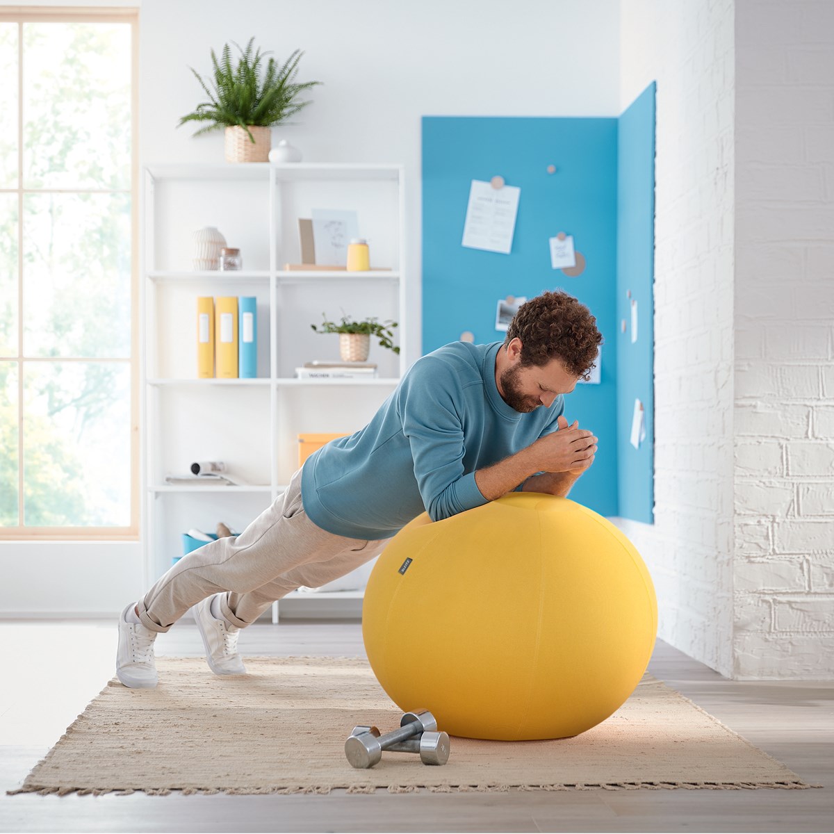 Leitz Ergo Cosy Aktiv Sittboll uppmuntrar rygg- och coremuskelrörelser, förbättrar hållning och lindrar ryggsmärtor. Perfekt att använda som en skrivbordsstol för att hålla dig aktiv medan du arbetar, som en yogaboll eller för att sträcka ryggen, till sjukgymnastik eller annan träning. Snabb och enkel att blåsa upp, den levereras med en handpump, 2 pluggar och har ett hållbart bärhandtag som gör det enkelt att bära från rum till rum. Med en minimalistisk design och matta bidrar sittbollen till en positiv arbetsmiljö, samtidigt som den gynnar fysisk hälsa och välbefinnande. Kombinera med andra Leitz Ergo-produkter för en inbjudande och flexibel arbetsyta som håller dig i rörelse hela dagen. Generös diameter på 65 cm med en robust ftalatfri innerboll, håller för upp till 100 kg.