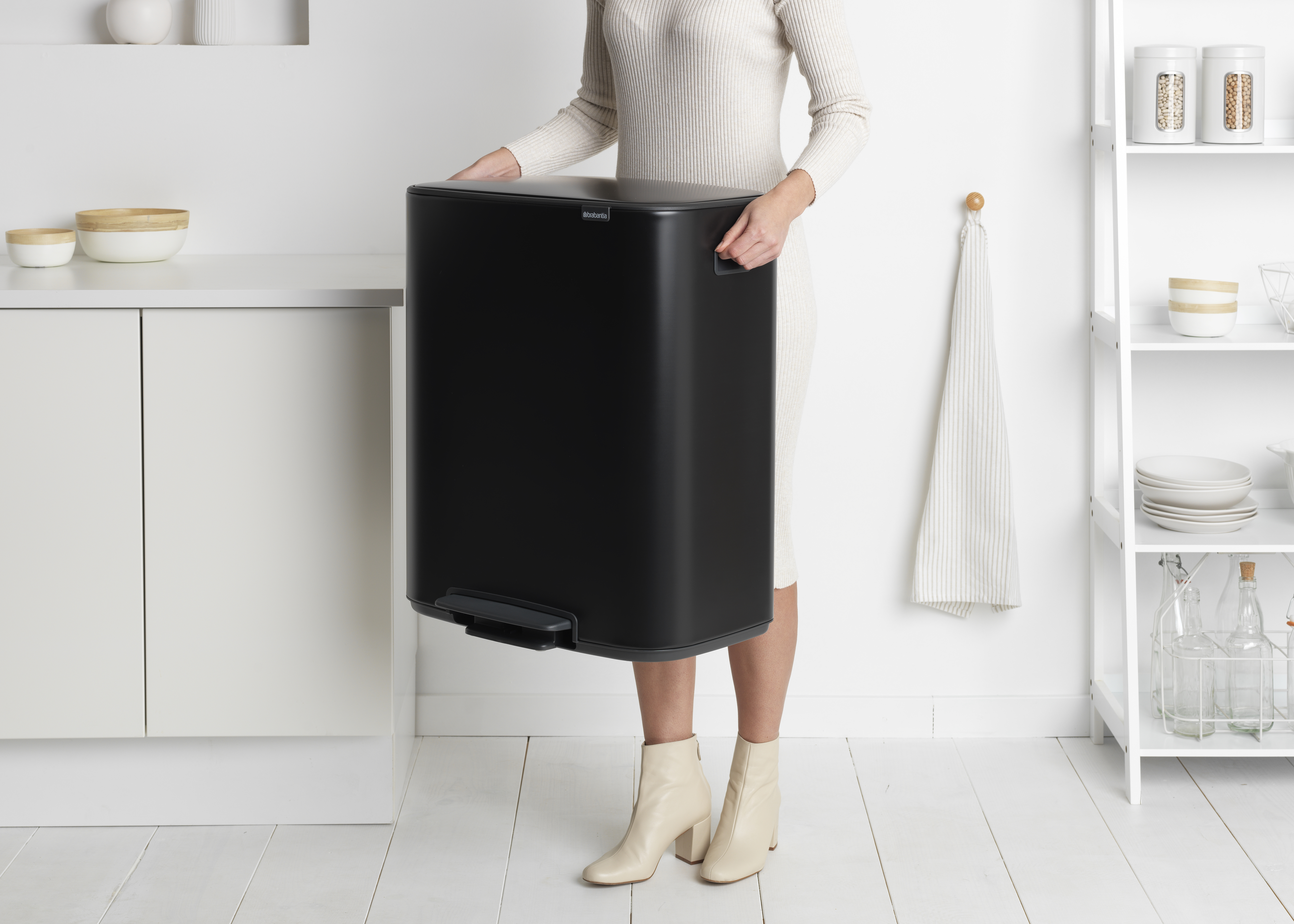 Smidig - ett mjukstängande lock med ett lätt tryck på pedalen Lätt att rengöra - en urtagbar plastinnerhink Lätt att flytta - två robusta integrerade handtag