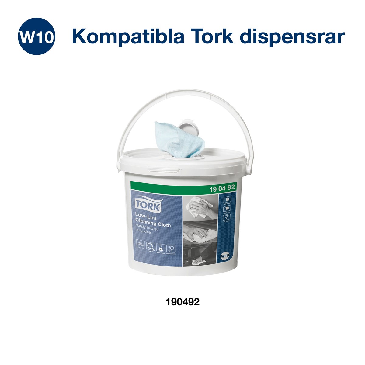 En smidig, tunn och följsam duk i nonwoven för precisionsrengöring. Luddar mycket lite, fungerar bra med lösnings-, rengörings och desinficeringsmedel. Godkänd för livsmedelskontakt. Mått: 60 m x 16,5 cm, perforerade. 200 turkosa dukar/hink.