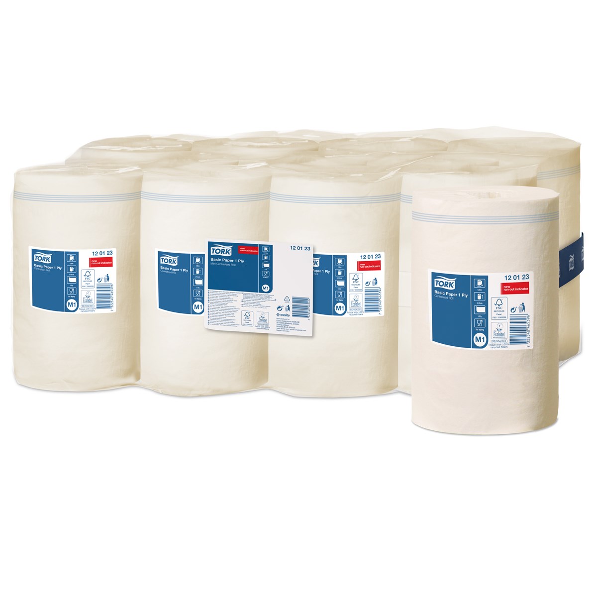 Centrummatat, vitt allroundpapper. Passar perfekt för lättare avtorkning och handavtorkning. Har slutindikator – När det är 4 m papper kvar, syns blå linjer som talar om att det är dags att byta rulle. 1-lag. Passar till Tork hållare Mini M1. 120 m, bredd 21,5 cm, 0,6 kg/rulle. 11 rl/förp.